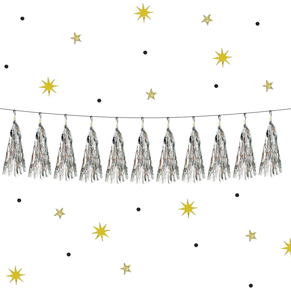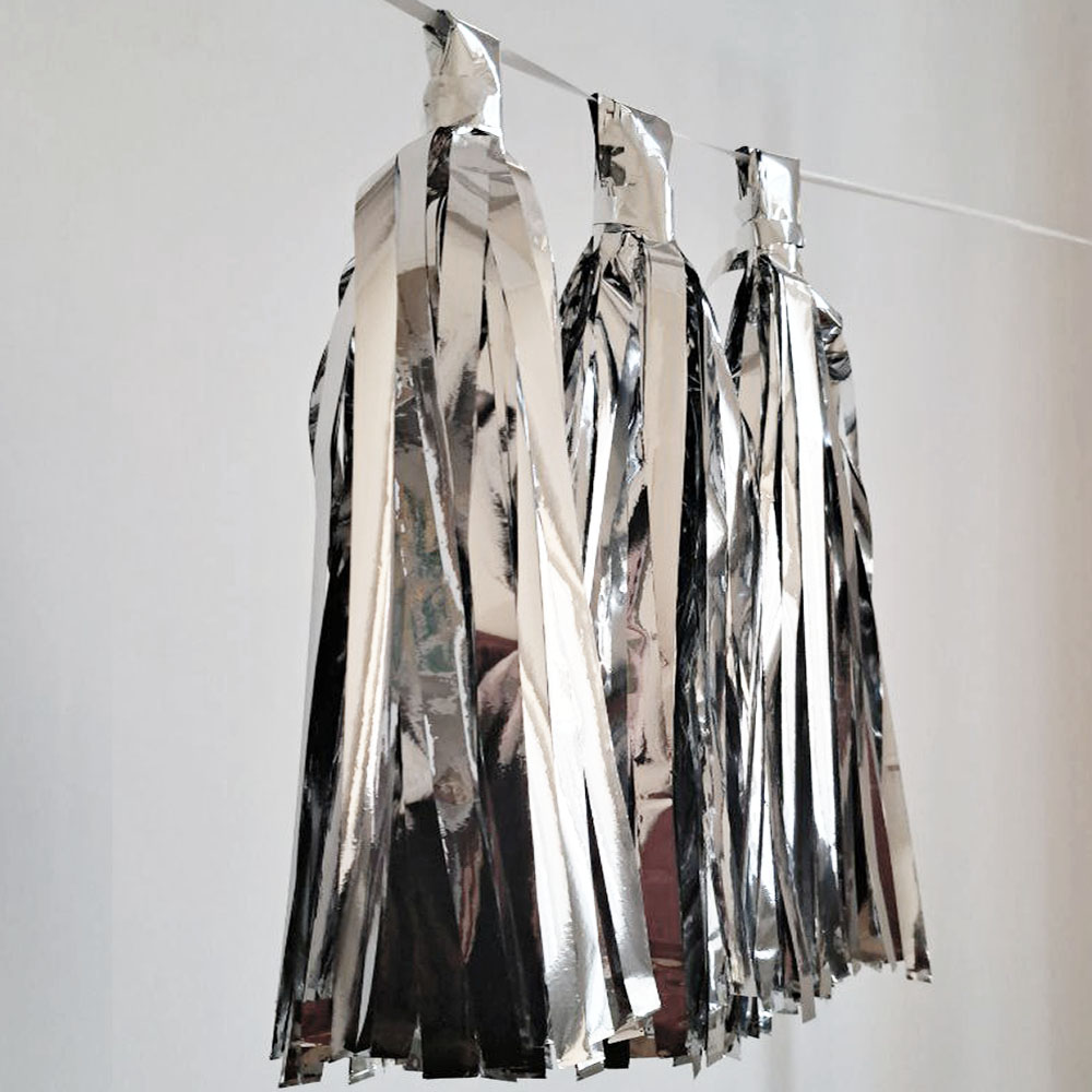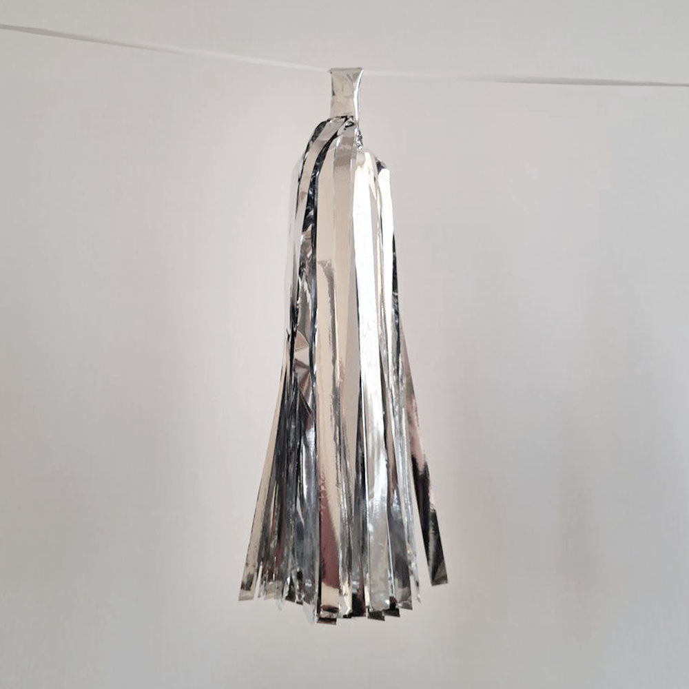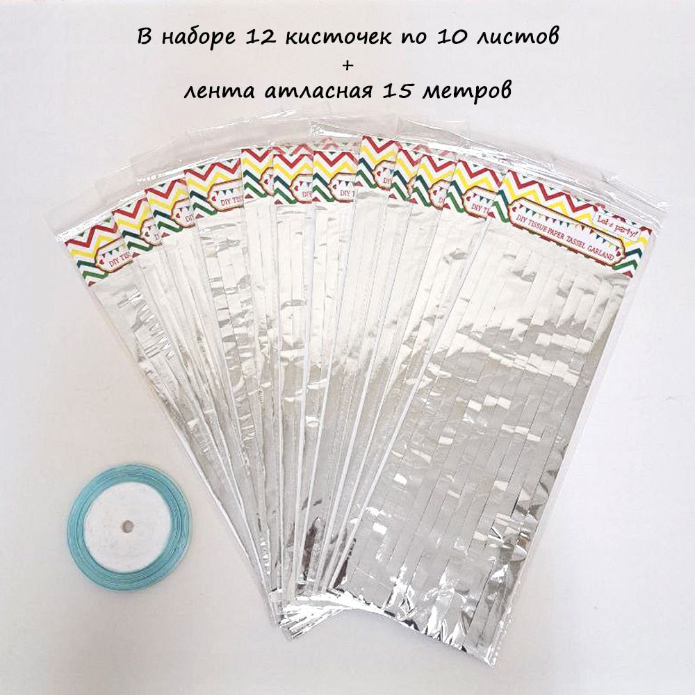 Гирлянда тассел 12 кисточек по 10 листов, фольга серебро