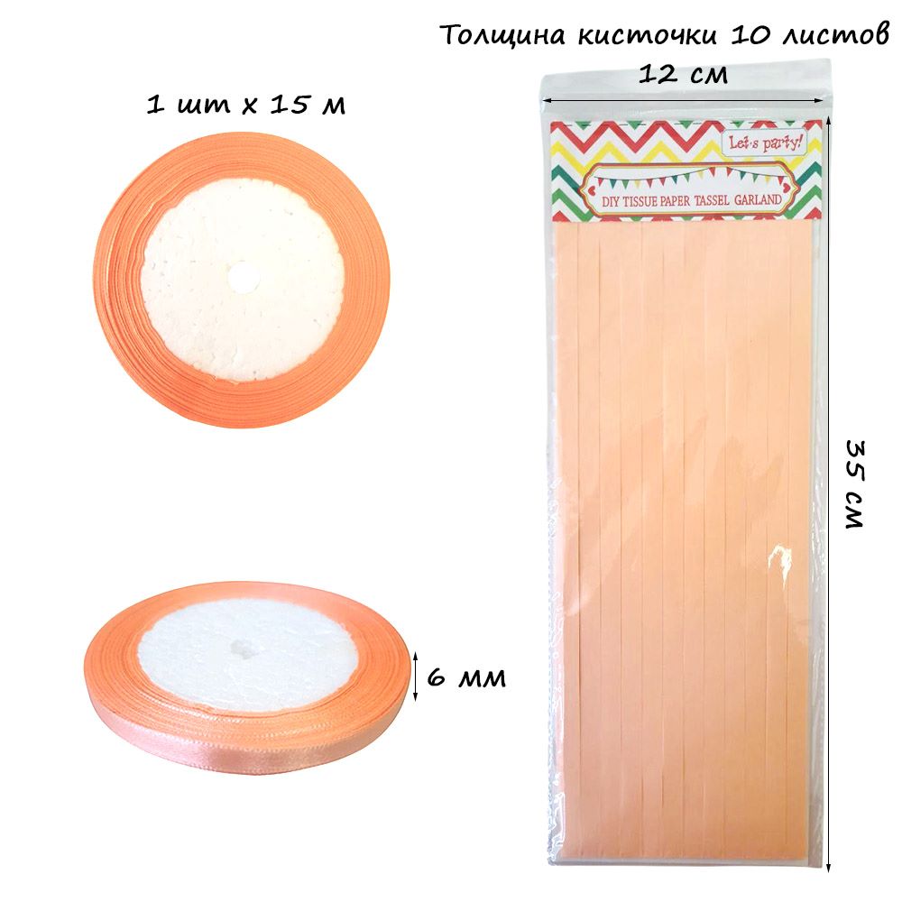 Гирлянда тассел 12 кисточек по 10 листов, персиковый