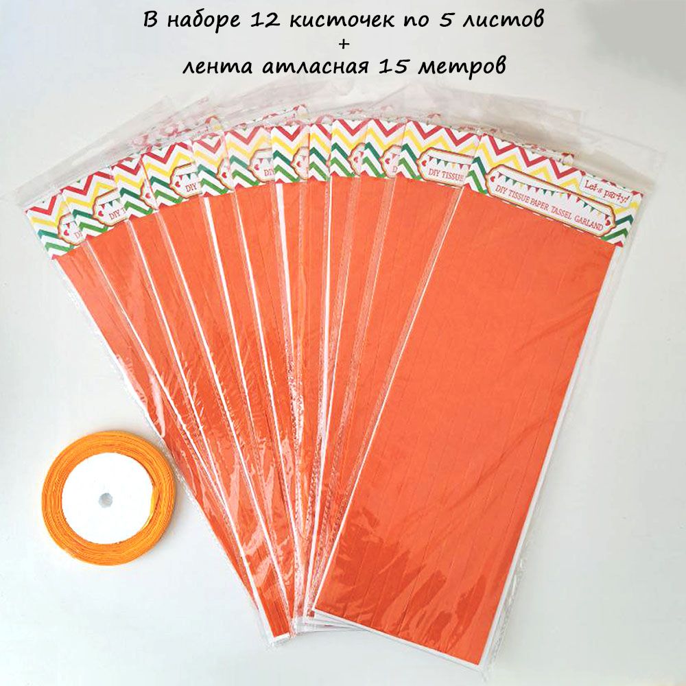 Гирлянда тассел 12 кисточек по 5 листов, оранжевый