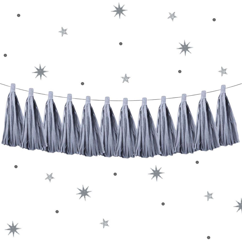 Гирлянда тассел 12 кисточек по 5 листов, серый