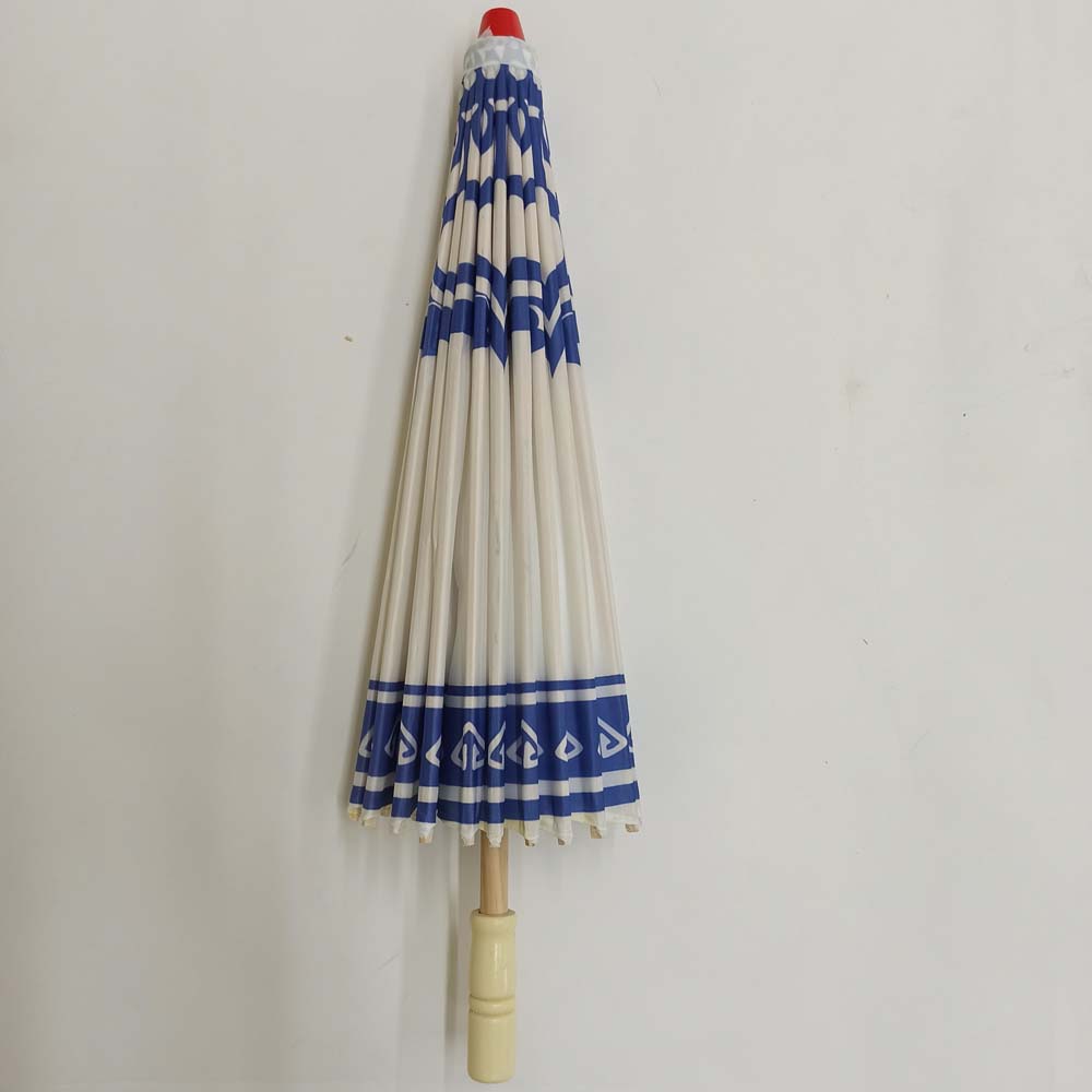 Каркас зонтика выполнен из дерева,купол зонта изготовлен из водоотталкивающего материала,который не пропускает воду.