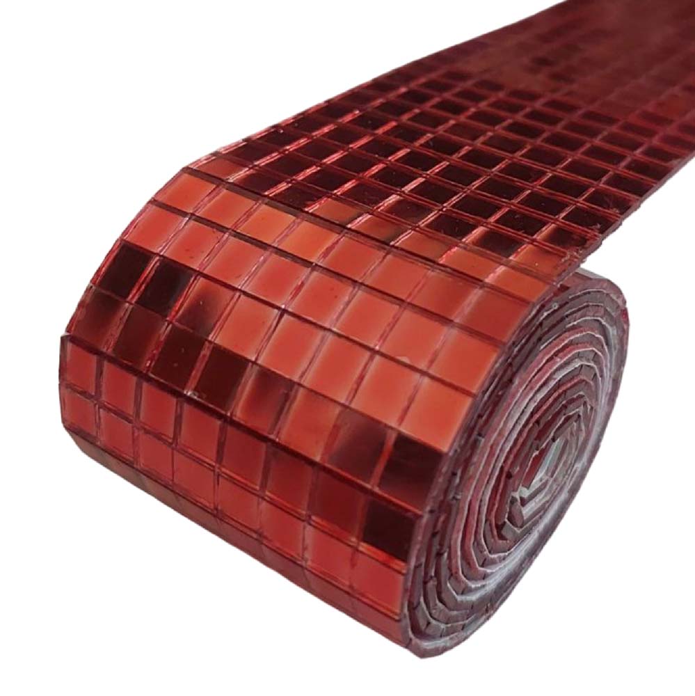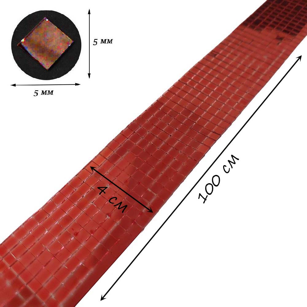 Лента самоклеящаяся зеркальная мозаика стекло, 4см х 1м 5х5мм, красный