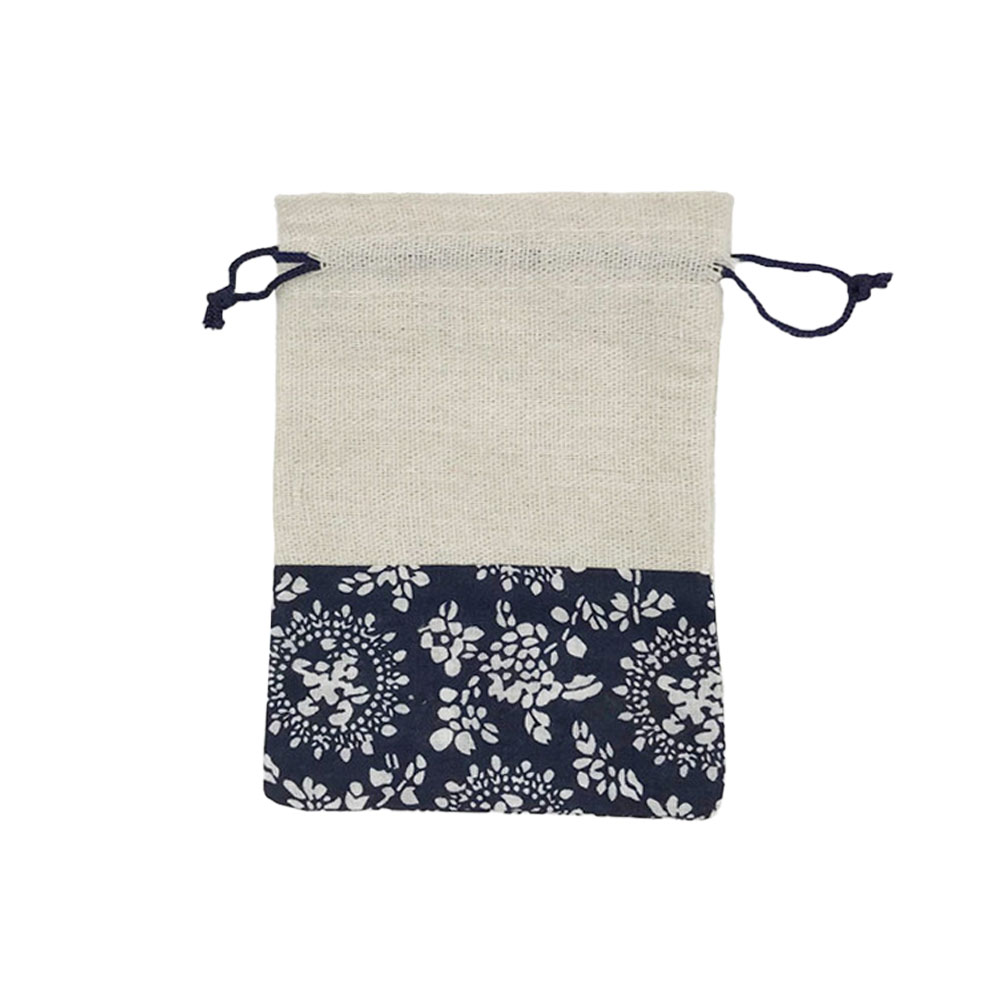Мешочек из искусственного льна и сатина 13х18 см, бело-бежевый