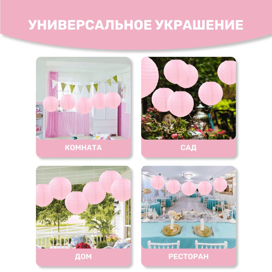 В комплект входит 8 бумажных фонариков и лента