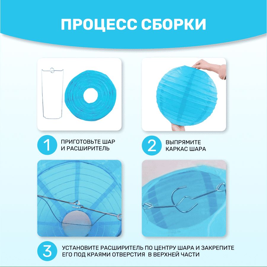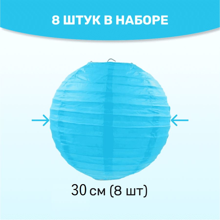 В комплект входит 8 бумажных фонариков и лента атласная.