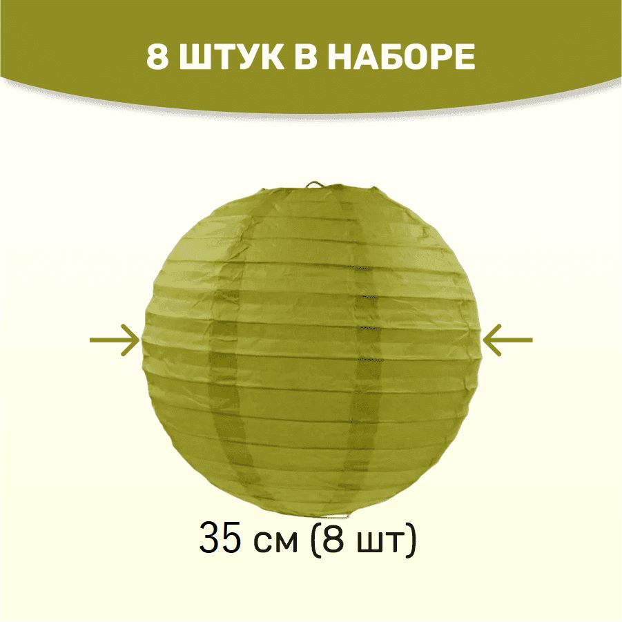 Комплект подвесные фонарики 35 см х 8 шт, фисташковый