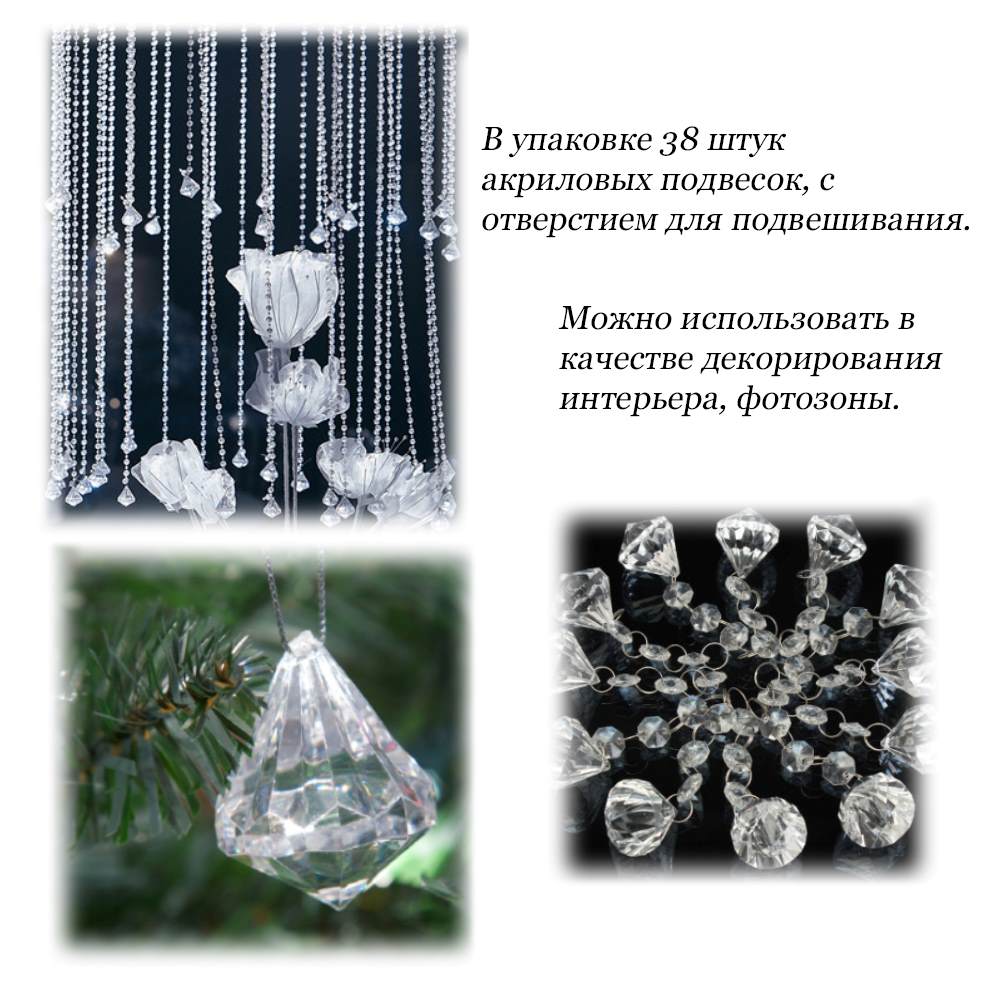 Подвески-бриллиант применяют для декорирования интерьера, фотозоны.