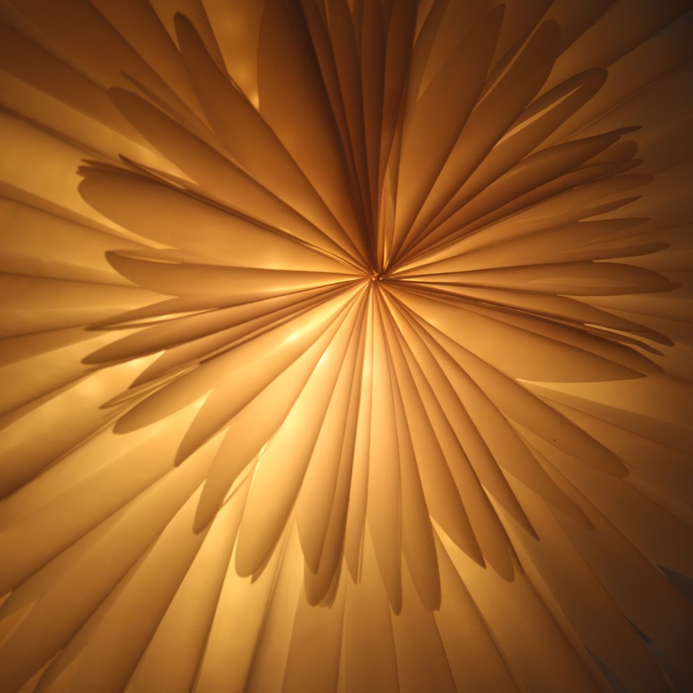 В снежинку можно вставить подсветку либо гирлянду со светодиодными лампами.