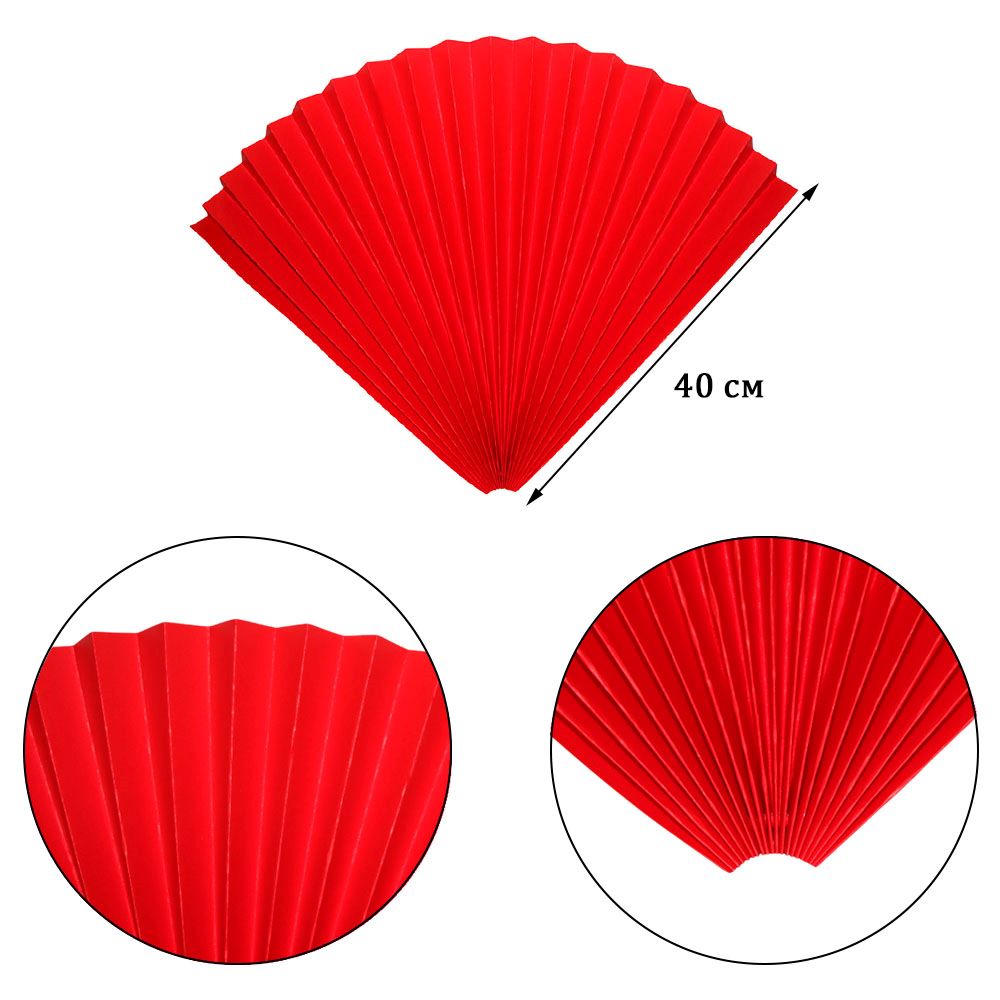 Веер-гармошка 160г/м 80 см, ярко-красный