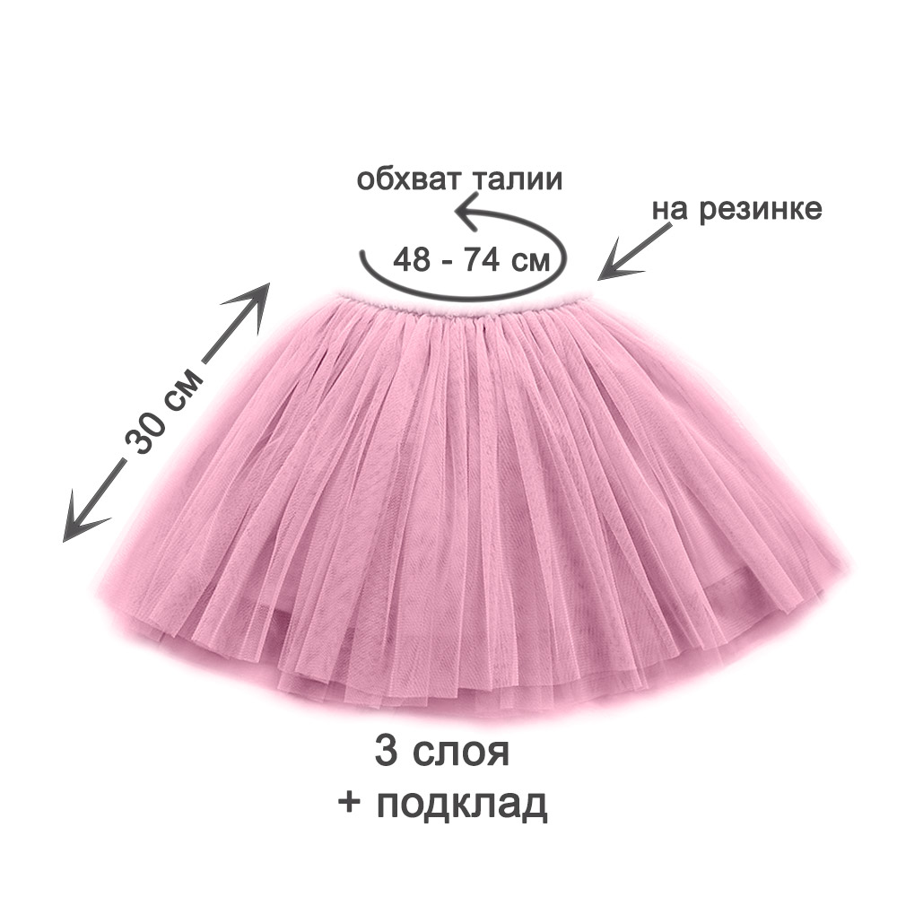 Юбка мягкая, удобная и лёгкая. Эластичный пояс обеспечивает комфортную посадку и свободу движений ребёнка, а три слоя фатина придают красивый объём и пышность.